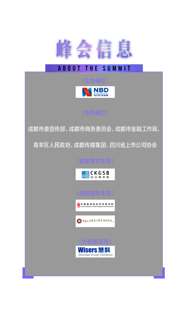 习近平总书记在十九大报告中指出,要深化医药卫生体制改革,全面建立中国特色基本医疗卫生制度、医疗保障制度和优质高效的医疗卫生服务体系。毫无疑问,医药产业又将开启新的伟大征程。医药和资本如何融入,医药创新的风口在哪里?在2017第六届中国上市公司领袖峰会召开之际,我们相约百家药企、千亿资金共聚成都。政府领导、上市公司高管、公私募基金经理、专家学者等人士将就医药与资本等相关话题,展开智慧的碰撞。
