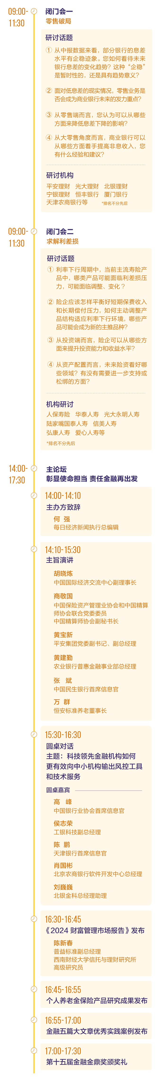 金融发展年会作为每日经济新闻年度重磅行业活动之一已成功举办14届。2024第十五届金融发展年会将于11月19日在北京举行,以“彰显使命担当 责任金融再出发”为主题,邀请行业协会、机构代表、专家学者等重磅嘉宾参与,通过“金融+社会”的双重视角,围绕金融机构践行“五篇大文章”,深刻探讨如何打造产融生态圈和社会责任共同体,实现可持续的中国特色金融发展之路。会上将同步揭晓第十五届金融金鼎奖,敬请关注。
