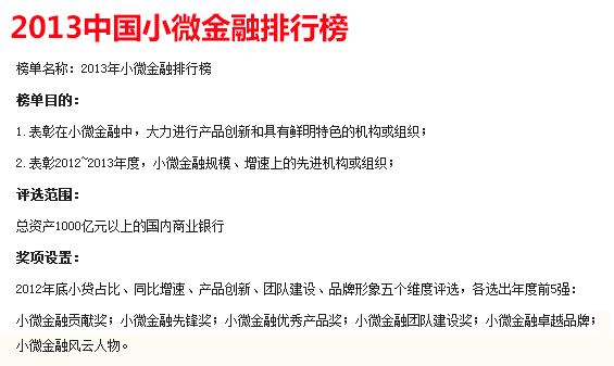 | 2013中国小微金融高峰论坛 | |||